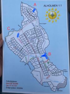 steg 1: är att tomterna som ligger vid markeringarna röjer vid stigen. Om någon av er behöver ngn hjälp/förtydling av område så är det bara att maila mig eller om ni har övriga frågor ang. öns allmänning.